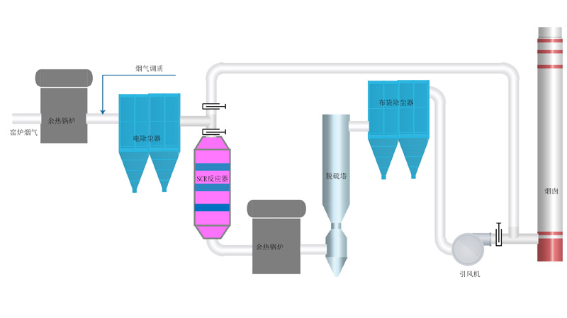 余热锅炉+烟气调质+SCR脱硝+余热